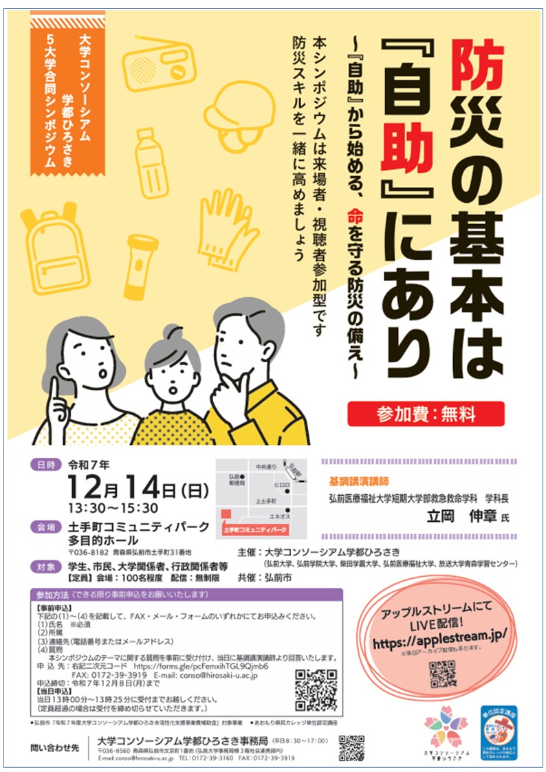 主催:大学コンソーシアム学都ひろさき(弘前大学、弘前学院大学、柴田学園大学、