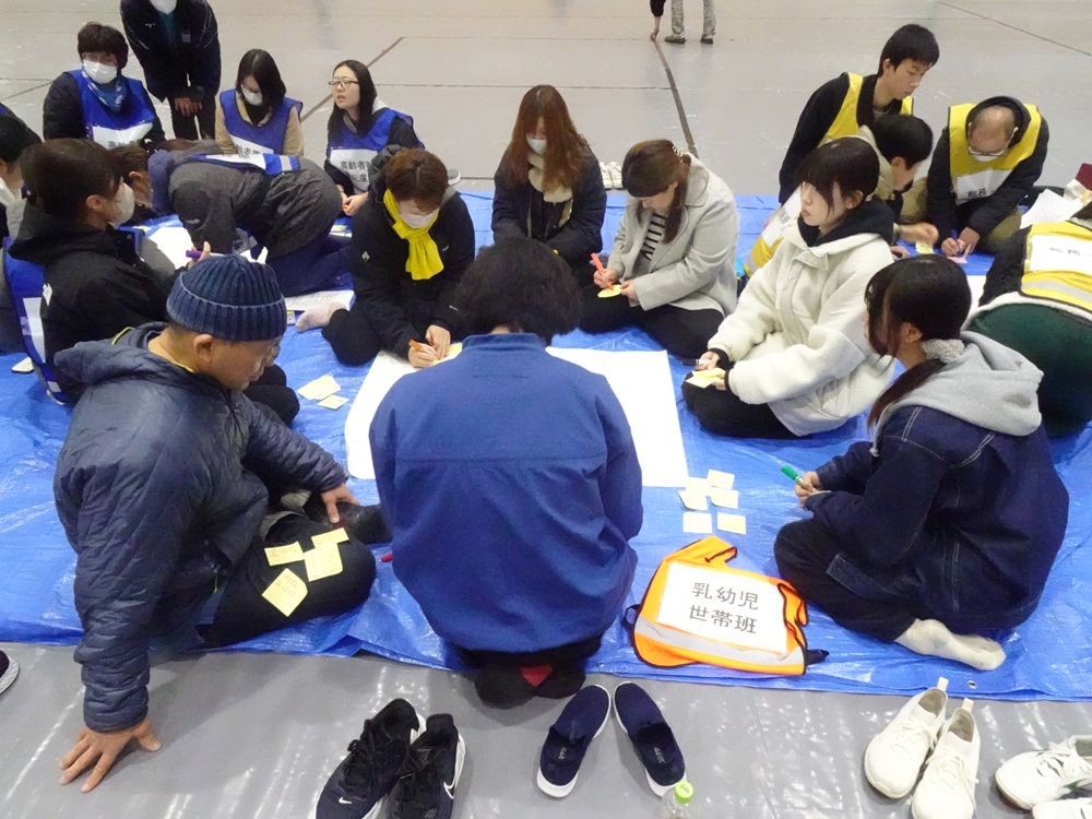 最後に、今回の講座を通して得た気づきや感じたこと、さらに工夫すべき点について参加者同士で共有しました。参加者からは、「多様な人がいるからこその配慮が必要だと実感した」「限られた資源で対応する難しさを感じた」「初めて会う人同士で協力するのは容易ではないが、積極性が大切だと思った」「非常時に多様性まで考えて行動するのは難しいため、日頃から意識しておくことが重要だと感じた」など、熱意のこもった感想が聞かれました。