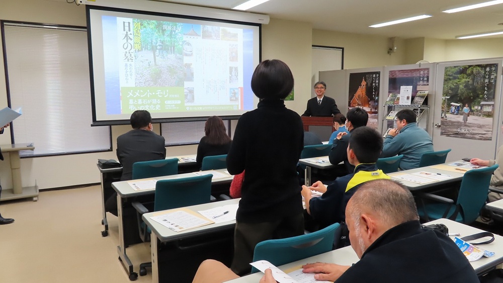 参加者は八戸市内外から23名、10代から60代の幅広い年齢層の方々にお越しいただきました。開催後のアンケートでは、「お墓は亡くなった人に対する畏敬であると考えさせられた」「歴史的な背景や民族間での埋葬方法の違いなどを知ることができた」「お墓の意義や歴史、地域性等について初めて知った」「歴史をお墓という観点から見た内容が大変面白かった」「墓を維持するにも、墓じまいするにも参考になった」など多くの感想をいただき、大変有意義なセミナーとなりました。