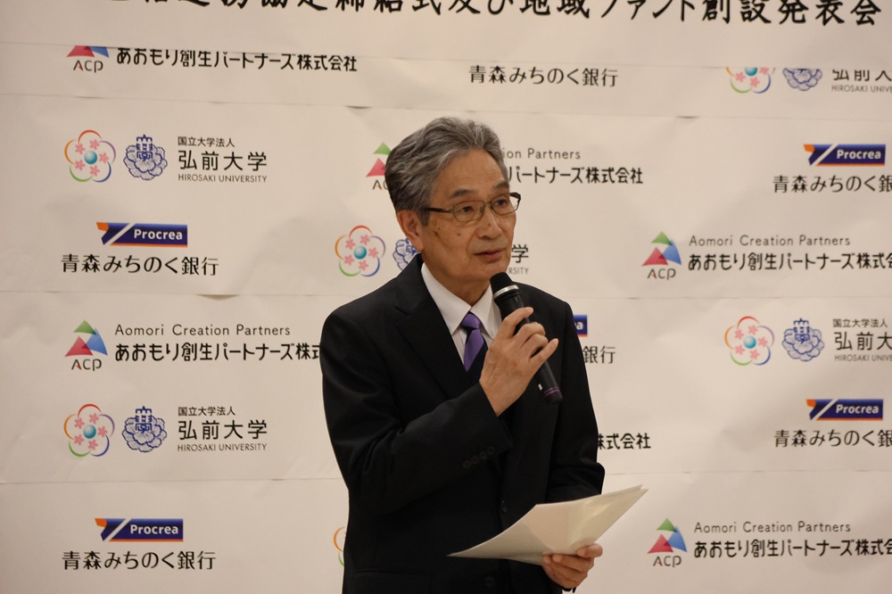 また、協定締結に併せて、このたびの連携に伴う取り組みの一環として、新たな地域ファンド「Hirosaki共創1号投資事業有限責任組合」を創設する旨の発表が行われた。このファンドでは、大学発の技術や研究成果を活用した事業を中心に、創業初期からプレシード期にある企業への投資を行うとともに、事業の成長に必要な支援を一体的に提供することで、地域経済に新たな価値を創出し、地域におけるスタートアップ支援のさらなる加速を目指していきます。